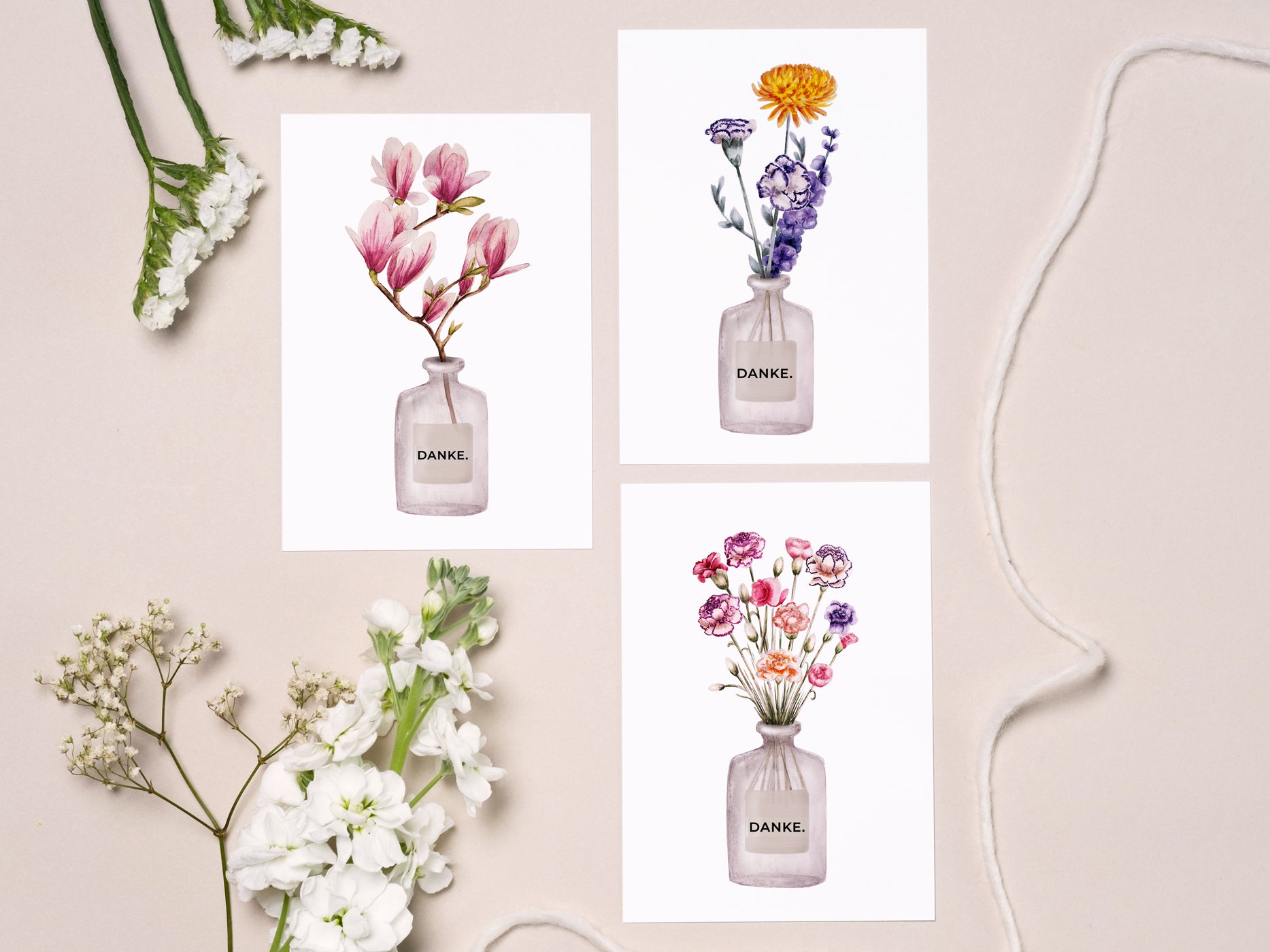 3er Dankeskartenset