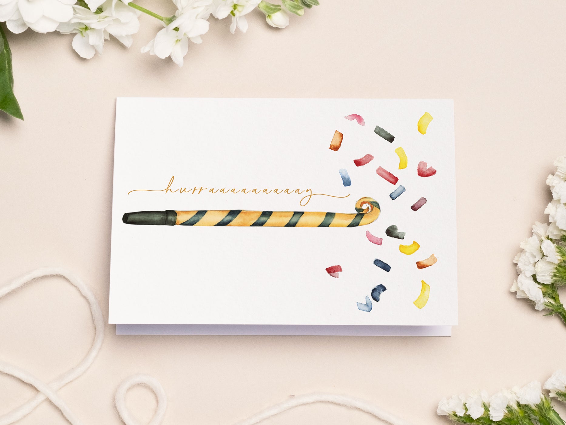 Ob zum Geburtstag, zum neuen Job oder zur bestandenen Prüfung – mit dieser Karte übermittelst du deine Glückwünsche auf stilvolle und herzliche Weise.